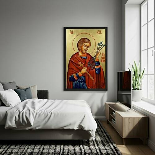 Quadro Decorativo São Sebastião - 70x50cm - Cor: Moldura Preta