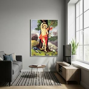 Quadro Decorativo São Sebastião Árvore - 70x50cm - Cor: Moldura Branca