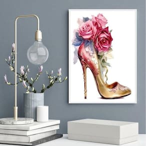 Quadro decorativo sapato de salto com flores 33x24cm - com vidro Moldura: madeira branca Informações do produto tire todas as suas dúvidas no descritivo abaixo: decoração para quarto, sala, cozinha, escritório, área gourmet e muito mais. Chega de paredes vazias medidas - cada peça tem 33x24cm a4 . Material do papel - papel fotográfico brilhante de altíssima resolução acabamento - todos os quadros são acompanhados de vidro para proteção da imagem. - moldura em madeira maciça na cor preta ou branca conforme produto escolhido e pendurador . - os quadros são embalados de forma segura com plástico bolha com camada dupla de acordo com o tamanho dos quadros. Garantia - garantia de 3 meses. Meu quadro chegou. Como posso fixá-lo Você precisa apenas de um martelo e um prego, pois os quadros já vão acompanhados de penduradores. Esta é a forma mais indicada. Como posso limpar meu quadro A limpeza é feita como um móvel comum da sua casa. Apenas um pano seco ou espanador são suficientes para tal Ean: 7896609576496