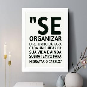Quadro decorativo se organizar direitinho 45x34cm Cor: moldura branca Informações do produto tire todas as suas dúvidas no descritivo abaixo: decoração para quarto, sala, cozinha, escritório, área gourmet e muito mais. Chega de paredes vazias. Medidas - cada peça tem 45x34cm a3 . Material do papel - papel fotográfico brilhante de altíssima resolução acabamento - todos os quadros são acompanhados de uma película de acetato para proteção da imagem. - os quadros são embalados de forma segura com plástico bolha com camada dupla de acordo com o tamanho dos quadros. Garantia - garantia de 3 meses. Meu quadro chegou. Como posso fixá-lo Você precisa apenas de um martelo e um prego, pois os quadros já vão acompanhados de penduradores. Esta é a forma mais indicada. Caso prefira, você pode utilizar uma fita dupla face neste caso, sugerimos de alta qualidade para evitar que descole e seu quadro caia . Como posso limpar meu quadro A limpeza é feita como um móvel comum da sua casa. Apenas um pano seco ou espanador são suficientes para tal