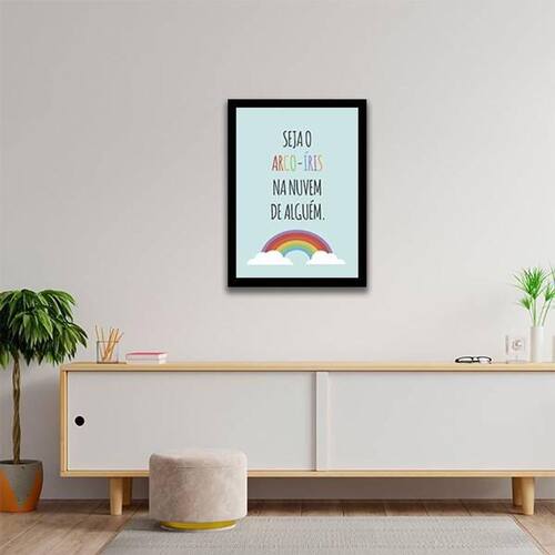 Quadro decorativo seja o arco-íris da nuvem de alguém 34x23cm - moldura branca Tamanho: a4 20 x 30 Acabamento: película de acetato Moldura: madeira branca Informações do produto Tire todas as suas dúvidas no descritivo abaixo: Decoração para quarto, sala, cozinha, escritório, área gourmet e muito mais. Chega de paredes vazias Medidas - cada peça tem 34x23cm a4 . Material do papel - papel fotográfico brilhante de altíssima resolução Acabamento - todos os quadros são acompanhados de uma película de acetato para proteção da imagem. - moldura em madeira maciça na cor branca e pendurador móvel que pode ser retirado facilmente caso deseje fixar com fita dupla face. - os quadros são embalados de forma segura com plástico bolha com camada dupla de acordo com o tamanho dos quadros. - de 3 meses Meu quadro chegou. Como posso fixá-lo Você precisa apenas de um martelo e um prego, pois os quadros já vão acompanhados de penduradores. Esta é a forma mais indicada. Caso prefira, você pode utilizar uma fita dupla face neste caso, sugerimos de alta qualidade para evitar que descole e seu quadro caia . Como posso limpar meu quadro A limpeza é feita como um móvel comum da sua casa. Apenas um pano seco ou espanador são suficientes para tal