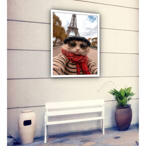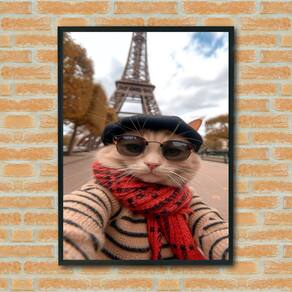 Quadro Decorativo Selfie Gato Em Paris - 70x50cm - Cor: Moldura Preta