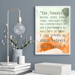 Quadro decorativo ser terapeuta 24x18cm Cor: moldura branca Informações do produto tire todas as suas dúvidas no descritivo abaixo: decoração para quarto, sala, cozinha, escritório, área gourmet e muito mais. Chega de paredes vazias medidas - cada peça tem 24x18cm a5 . Material do papel - papel fotográfico brilhante de altíssima resolução acabamento - todos os quadros são acompanhados de uma película de acetato para proteção da imagem. - os quadros são embalados de forma segura com plástico bolha com camada dupla de acordo com o tamanho dos quadros. Garantia - garantia de 3 meses. Meu quadro chegou. Como posso fixá-lo Você precisa apenas de um martelo e um prego, pois os quadros já vão acompanhados de penduradores. Esta é a forma mais indicada. Caso prefira, você pode utilizar uma fita dupla face neste caso, sugerimos de alta qualidade para evitar que descole e seu quadro caia . Como posso limpar meu quadro A limpeza é feita como um móvel comum da sua casa. Apenas um pano seco ou espanador são suficientes para tal