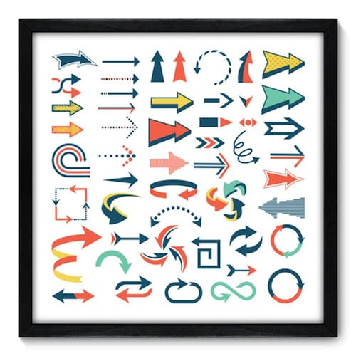 Quadro Decorativo com Moldura e Vidro - Setas - Os quadros da Allodi ficam bem em todos os ambientes, na sala, no quarto, na cozinha, na varanda e até no cantinho do churrasco, dão um toque de qualidade na decoração do ambiente, com gancho na parte de trás para pendurar na parede ou colocar na prateleira. - Fabricados em madeira de alta qualidade (não é madeira pintada e nem MDF) e vidro anti-risco garantindo maior qualidade e beleza da imagem.