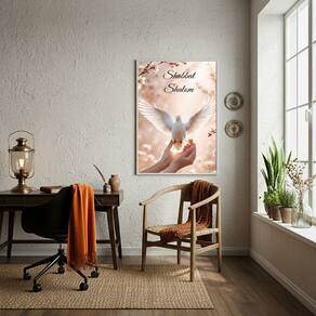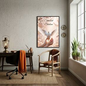 Quadro Decorativo Shabbat Shalom Pomba da Paz - 70x50cm - Cor: Moldura Branca