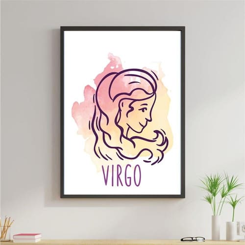 Quadro Decorativo Signos Aquarela - Virgem - Tamanho: A4 (20 x 30) / Acabamento: Película de acetato / Moldura: Madeira preta