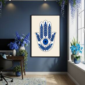 Quadro Decorativo Símbolo Mão De Hamsá 70x50cm Mold Preta