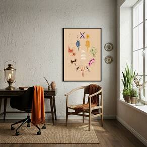 Quadro Decorativo Símbolos de Diversos Orixás - 70x50cm - Cor: Moldura Branca