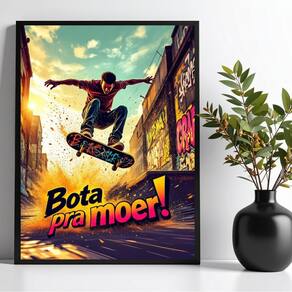 Quadro Decorativo Skatista - Bota Pra Moer 45x34cm - com vidro - Cor: Moldura branca