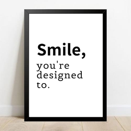 Quadro Decorativo Smile - Moldura Preta E Vidro A4 WG MOLDURAS Características: Cor da moldura: preta Tamanho total: 24x33 sendo a moldura de 1,5 cm de cada lado Vidro: incolor 0,02 mm Todos os quadros acompanham pendurador acoplado, o acabamento do quadro é feito em fita gomada para garantir maior durabilidade e acabamento na peça. Imagem com alta resolução, sendo ela impressa em papel fotográfico. Marca: Wg Moldura