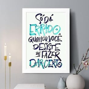 Quadro decorativo só dá errado quando você desiste 33x24cm - com vidro Cor: moldura preta Informações do produto tire todas as suas dúvidas no descritivo abaixo: decoração para quarto, sala, cozinha, escritório, área gourmet e muito mais. Chega de paredes vazias medidas - cada peça tem 33x24cm a4 . Material do papel - papel fotográfico brilhante de altíssima resolução acabamento - todos os quadros são acompanhados de vidro para proteção da imagem. - moldura em madeira maciça na cor preta ou branca conforme produto escolhido e pendurador . - os quadros são embalados de forma segura com plástico bolha com camada dupla de acordo com o tamanho dos quadros. Garantia - garantia de 3 meses. Meu quadro chegou. Como posso fixá-lo Você precisa apenas de um martelo e um prego, pois os quadros já vão acompanhados de penduradores. Esta é a forma mais indicada. Como posso limpar meu quadro A limpeza é feita como um móvel comum da sua casa. Apenas um pano seco ou espanador são suficientes para tal