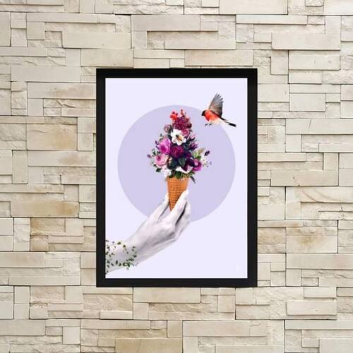 Quadro decorativo sorvete com flores 45x34cm - com vidro Moldura: madeira preta Informações do produto tire todas as suas dúvidas no descritivo abaixo: decoração para quarto, sala, cozinha, escritório, área gourmet e muito mais. Chega de paredes vazias medidas - cada peça tem 45x34cm a3 . Material do papel - papel fotográfico brilhante de altíssima resolução acabamento - todos os quadros são acompanhados de vidro para proteção da imagem. - moldura em madeira maciça na cor preta e pendurador . - os quadros são embalados de forma segura com plástico bolha com camada dupla de acordo com o tamanho dos quadros. - de 3 meses. Meu quadro chegou. Como posso fixá-lo Você precisa apenas de um martelo e um prego, pois os quadros já vão acompanhados de penduradores. Esta é a forma mais indicada. Como posso limpar meu quadro A limpeza é feita como um móvel comum da sua casa. Apenas um pano seco ou espanador são suficientes para tal Marca: Não Informado