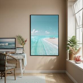 Quadro Decorativo Sossego No Paraíso-70x50cm - Cor: Moldura Preta