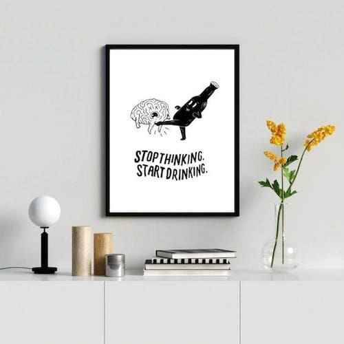 Garanta já o seu Quadro Decorativo Stop Thinking Start Drinking 33X24Cm e dê um toque de humor e personalidade ao seu ambiente!