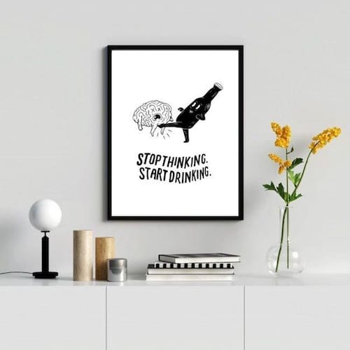 O Quadro Decorativo Stop Thinking Start Drinking é perfeito para dar um toque de personalidade e estilo à sua casa. Com medidas de 33x24cm, ele é ideal para decorar qualquer ambiente, seja o quarto, sala, cozinha, escritório, área gourmet e muito mais.