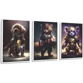 Quadro Decorativo Super Heróis Pets Com Moldura Branco