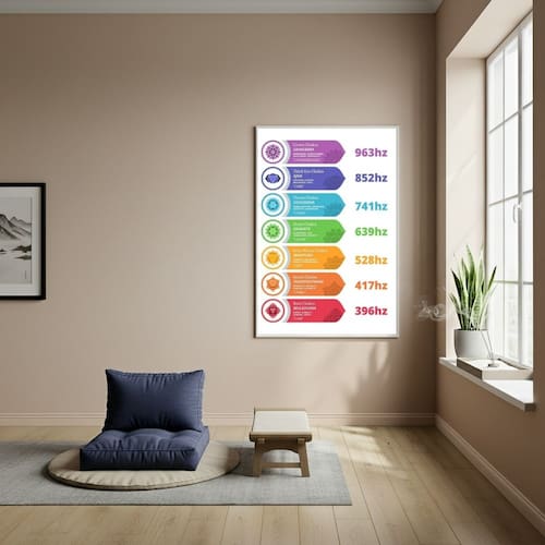 Quadro Decorativo Tabela Os Sete Charkras do Corpo - 70x50cm - Cor: Moldura Preta
