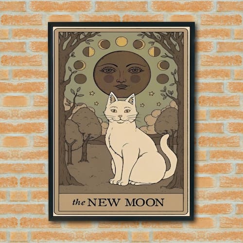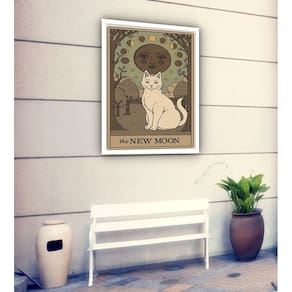 Quadro Decorativo Tarot Gato A Lua Nova - 70x50cm - Cor: Moldura Branca