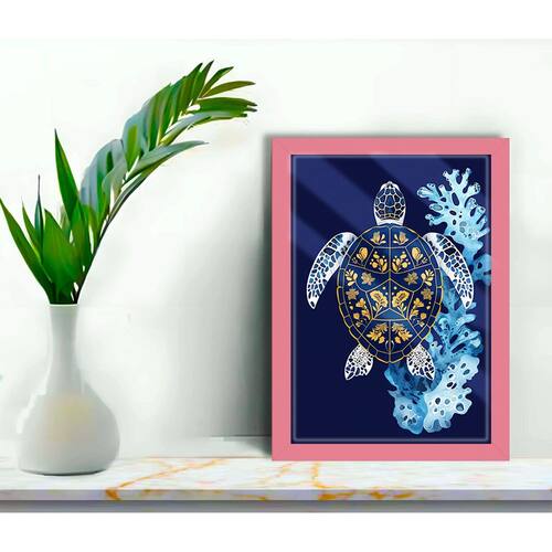 Quadro Decorativo Tartaruga Abstrata +Vidro 33x25 Escritório - Cor: Rosa