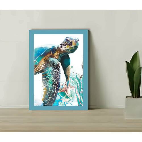 Quadro Decorativo Tartaruga Aquarela + Vidro 33x25 Estudio - Cor: Azul