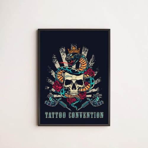 Quadro decorativo tatoo convention 24x18cm Moldura: madeira preta Informações do produto tire todas as suas dúvidas no descritivo abaixo: decoração para quarto, sala, cozinha, escritório, área gourmet e muito mais. Chega de paredes vazias medidas - cada peça tem 24x18cm a5 . Material do papel - papel fotográfico brilhante de altíssima resolução acabamento - todos os quadros são acompanhados de uma película de acetato para proteção da imagem. - moldura em madeira maciça na cor branca e pendurador móvel que pode ser retirado facilmente caso deseje fixar com fita dupla face. - os quadros são embalados de forma segura com plástico bolha com camada dupla de acordo com o tamanho dos quadros. - de 3 meses prazo de envio pedimos 24 horas úteis no máximo para enviar seu pedido após o envio, segue os prazos normais dos correios, cerca de 7 dias úteis exceto para norte e nordeste, que pode ser de até 14 dias úteis. Em diversas cidades, este prazo normalmente é reduzido, mas depende do prazo dos correios. Meu quadro chegou. Como posso fixá-lo Você precisa apenas de um martelo e um prego, pois os quadros já vão acompanhados de penduradores. Esta é a forma mais indicada. Caso prefira, você pode utilizar uma fita dupla face neste caso, sugerimos de alta qualidade para evitar que descole e seu quadro caia . Como posso limpar meu quadro A limpeza é feita como um móvel comum da sua casa. Apenas um pano seco ou espanador são suficientes para tal