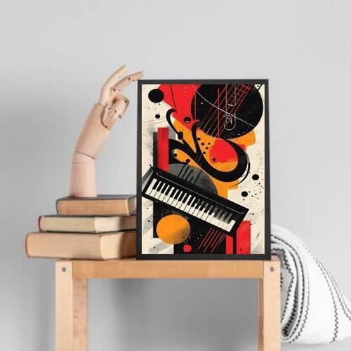 Quadro decorativo teclado - música 45x34cm - com vidro