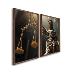 Quadro decorativo temático direito modelo balança da justiça com 2 telas 50x75cm ou 60x90cm para sala, quarto, banheiro, escritório, hall, hall de entrada, estúdio, salão, clínica.