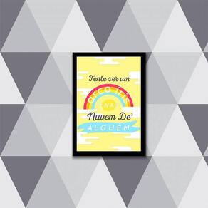 Quadro decorativo tente ser um arco-íris na nuvem de alguém 34x23cm - moldura branca Tamanho: a4 20 x 30 Acabamento: película de acetato Moldura: madeira branca Informações do produto Tire todas as suas dúvidas no descritivo abaixo: Decoração para quarto, sala, cozinha, escritório, área gourmet e muito mais. Chega de paredes vazias Medidas - cada peça tem 34x23cm a4 . Material do papel - papel fotográfico brilhante de altíssima resolução Acabamento - todos os quadros são acompanhados de uma película de acetato para proteção da imagem. - moldura em madeira maciça na cor branca e pendurador móvel que pode ser retirado facilmente caso deseje fixar com fita dupla face. - os quadros são embalados de forma segura com plástico bolha com camada dupla de acordo com o tamanho dos quadros. - de 3 meses Meu quadro chegou. Como posso fixá-lo Você precisa apenas de um martelo e um prego, pois os quadros já vão acompanhados de penduradores. Esta é a forma mais indicada. Caso prefira, você pode utilizar uma fita dupla face neste caso, sugerimos de alta qualidade para evitar que descole e seu quadro caia . Como posso limpar meu quadro A limpeza é feita como um móvel comum da sua casa. Apenas um pano seco ou espanador são suficientes para tal Marca: Não Informado