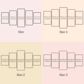 Peças menores: 25x40 cm | Peças médias: 25x51 cm | Peça central: 25x63 cm