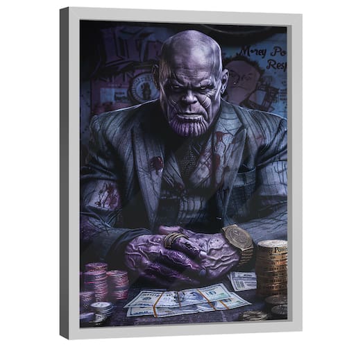 Quadro Decorativo Thanos Negociador Moldura Branca e Vidro - 150x100cm -