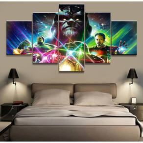 Quadro Decorativo Thanos Vingadores6 5 peças 130x65 cm em te