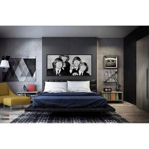 Quadro Decorativo The Beatles Sala 130x60 Moldura Preta 2x2