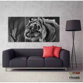 Quadro Decorativo Tigre Artístico Sala Em Tecido 3 Peças 120