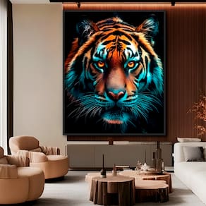 Quadro Decorativo Tigre Majestoso Variação Moldura Preta - 84x54cm -