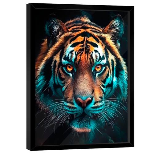 Quadro Decorativo Tigre Majestoso Variação Moldura Preta e Vidro - 84x54cm -