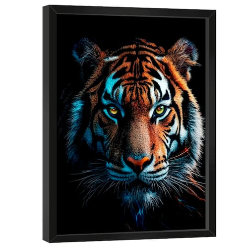 Quadro Decorativo Tigre Majestoso Moldura Preta - 150x100cm -
