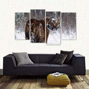 Quadro Decorativo Tigre Na Neve Mosaico Em Tecido 4 Peças 1