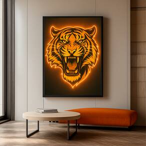 Quadro Decorativo Tigre Neon Amarelo Moldura Preta - 60x40cm -
