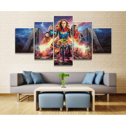 Quadro Decorativo Time Vingadores 5 peças 130x65 cm em tecid