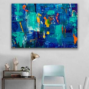 QUADRO DECORATIVO TINTA ABSTRATO AZUL Grande 118x78 -