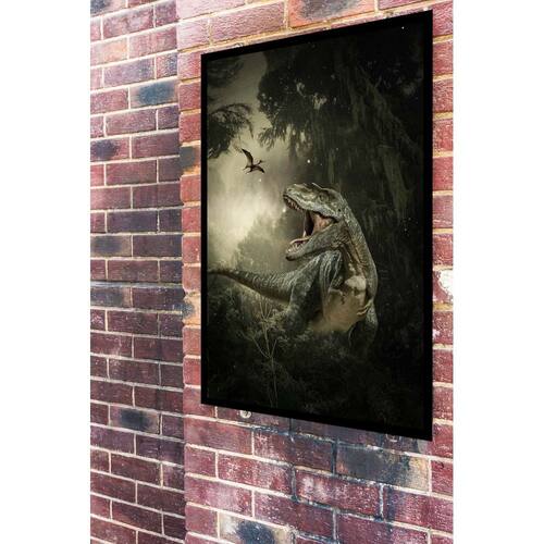 Quadro Decorativo Tiranossauro Rex Floresta - 70x50cm - Cor: Moldura Branca