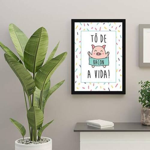 Quadro decorativo to de bacon a vida 34x23cm - moldura branca Tamanho: a4 20 x 30 Acabamento: película de acetato Moldura: madeira branca Informações do produto Tire todas as suas dúvidas no descritivo abaixo: Decoração para quarto, sala, cozinha, escritório, área gourmet e muito mais. Chega de paredes vazias Medidas - cada peça tem 34x23cm a4 . Material do papel - papel fotográfico brilhante de altíssima resolução Acabamento - todos os quadros são acompanhados de uma película de acetato para proteção da imagem. - moldura em madeira maciça na cor branca e pendurador móvel que pode ser retirado facilmente caso deseje fixar com fita dupla face. - os quadros são embalados de forma segura com plástico bolha com camada dupla de acordo com o tamanho dos quadros. - de 3 meses Meu quadro chegou. Como posso fixá-lo Você precisa apenas de um martelo e um prego, pois os quadros já vão acompanhados de penduradores. Esta é a forma mais indicada. Caso prefira, você pode utilizar uma fita dupla face neste caso, sugerimos de alta qualidade para evitar que descole e seu quadro caia . Como posso limpar meu quadro A limpeza é feita como um móvel comum da sua casa. Apenas um pano seco ou espanador são suficientes para tal Marca: Não Informado Ean: 7892090310373