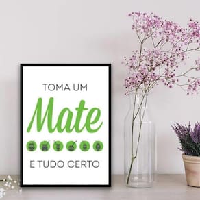 Quadro decorativo toma um mate 45x34cm - com vidro Moldura: madeira preta Informações do produto tire todas as suas dúvidas no descritivo abaixo: decoração para quarto, sala, cozinha, escritório, área gourmet e muito mais. Chega de paredes vazias medidas - cada peça tem 45x34cm a3 . Material do papel - papel fotográfico brilhante de altíssima resolução acabamento - todos os quadros são acompanhados de vidro para proteção da imagem. - moldura em madeira maciça na cor preta e pendurador . - os quadros são embalados de forma segura com plástico bolha com camada dupla de acordo com o tamanho dos quadros. Garantia - garantia de 3 meses. Meu quadro chegou. Como posso fixá-lo Você precisa apenas de um martelo e um prego, pois os quadros já vão acompanhados de penduradores. Esta é a forma mais indicada. Como posso limpar meu quadro A limpeza é feita como um móvel comum da sua casa. Apenas um pano seco ou espanador são suficientes para tal Ean: 7898926219810