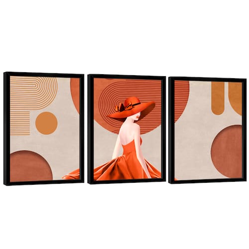 Quadro Decorativo Trio Abstrato e Mulher Moldura Preta - 84x54cm -