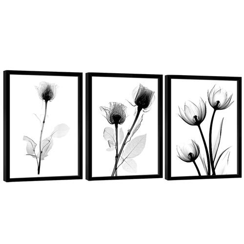 Quadro Decorativo Trio Flor Estilo Desenho Moldura Preta - 60x40cm -
