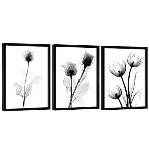 Quadro Decorativo Trio Flor Estilo Desenho Quadro Decorativo Trio Flor Estilo Desenho Moldura Preta - 118x78cm - Especificações