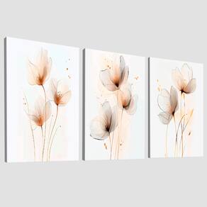 Quadro Decorativo Trio Flor Minimalista Elegância Moldura Dourada - 118x78cm -