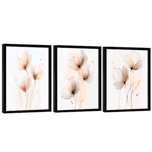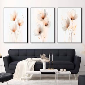 Quadro Decorativo Trio Flor Minimalista Elegância Moldura Preta - 60x40cm -