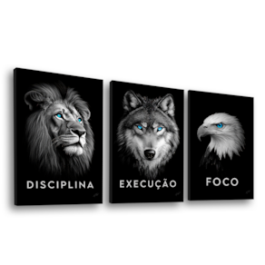 Quadro Decorativo Trio Foco, Disciplina e Execução Premium Moldura Branca - 118x78cm -