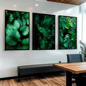 Quadro Decorativo Trio Folhas Verdes Moldura Preta - 118x78cm -